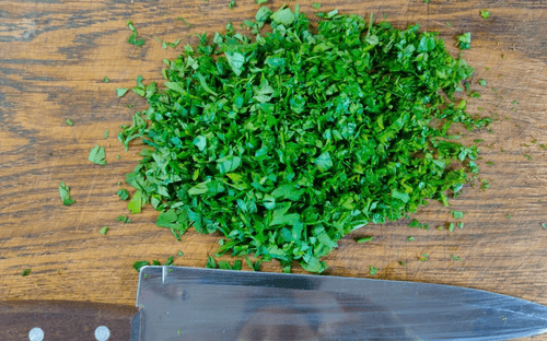 Затем нашинковать мелко петрушку.