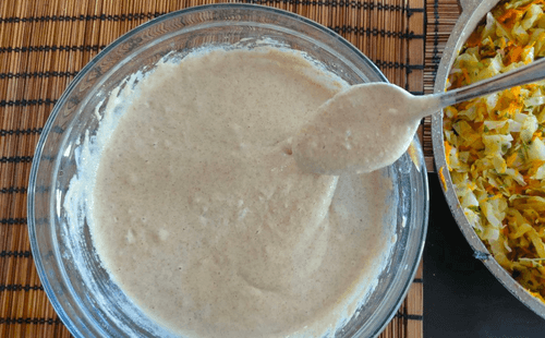 Получится две емкости: с овощами и жидким тестом.
