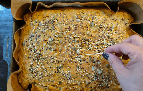 Готовность пирога определить зубочисткой — она останется сухой, если проткнуть пирог.