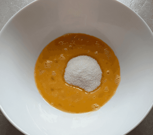 В миску разбить яйца, добавить соль и ванилин.