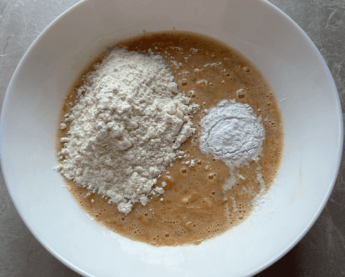 Всыпать муку с разрыхлителем.