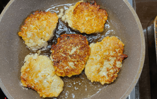 Обжарить на среднем огне с двух сторон до румяной корочки.