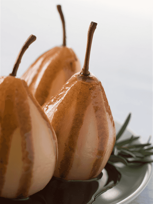 Твердые спелые груши небольшого размера (например, сорт «Форель») разрезать пополам, удалить сердцевину и добавить в сироп. Накрыть все пергаментной бумагой и тушить 35-40 мин., периодически переворачивая груши, пока они не станут мягкими.
