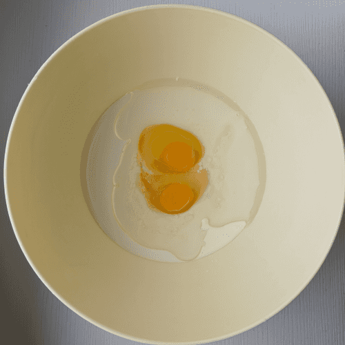 Разбить в смесь 2 яйца.