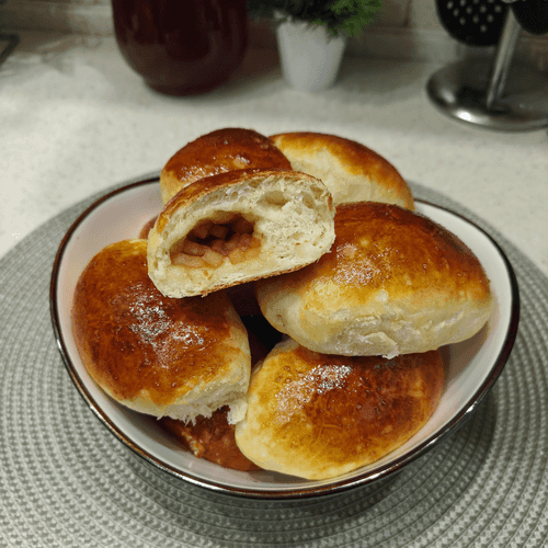 Пирожки с яблоком и корицей — классика русской кухни, в которой уютный аромат корицы сочетается со сладкими, карамелизированными яблоками. Тесто, мягкое и воздушное благодаря кефиру и дрожжам, обволакивает начинку, создавая нежное сочетание вкусов. Эти пирожки дарят ощущение домашнего тепла и напоминают семейные чаепития в осенние вечера. Исторически яблоки и корица — традиционное сочетание, используемое в русской выпечке с давних времен. Блюдо идеально подходит как к утреннему кофе, так и к вечернему чаю, а также может стать украшением праздничного стола. Выпечка приобретает аппетитную румяную корочку, а начинка остается сочной и ароматной. Наслаждаясь каждым кусочком, чувствуешь гармонию сладости и пряности, превращая обычный день в маленький праздник.