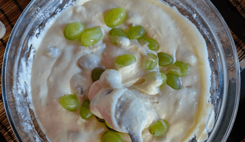 Оборвать виноград от веточек и добавить в тесто.