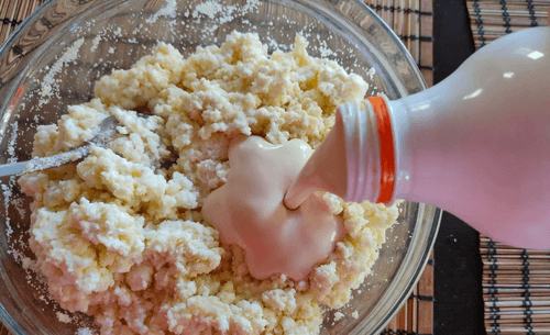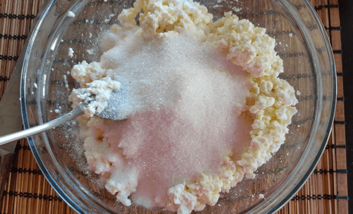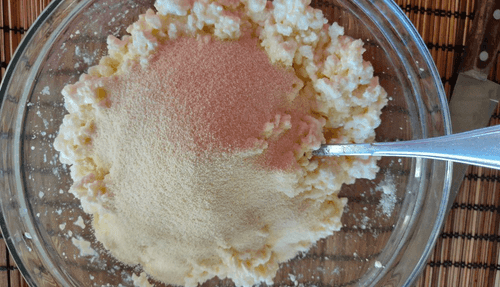 Снова перемешать. Получится негустое тесто. Его оставить на 15 минут, чтобы манка разбухла.