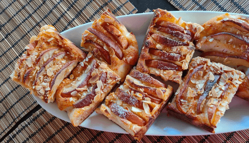 Творожно-манный пирог — нежное, воздушное угощение с насыщенным сливочным вкусом и легкой сладостью. Этот десерт, любимый во многих уголках Европы, восходит к традиционным рецептам домашней выпечки, где творог является основой для создания мягкой и питательной текстуры. Манка придает пирогу особую плотность, а фрукты — нотку свежести. Яблоки и груши, утопленные в тесте, раскрывают свой аромат при запекании, а миндальные лепестки добавляют пикантную хрустящую корочку. Пирог идеально подходит для уютных семейных чаепитий или как изысканный завтрак, который подарит энергию и хорошее настроение. Его можно подавать теплым, со сметаной или медом, усиливая кремовый вкус творога. Этот рецепт — гармония простоты и утонченного удовольствия!