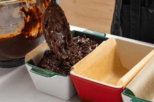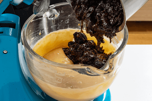 Когда тесто замешается, добавить пряную смесь из сотейника и аккуратно перемешать тесто еще раз.