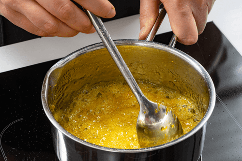 Довести смесь до кипения, полностью растворить сахар.
