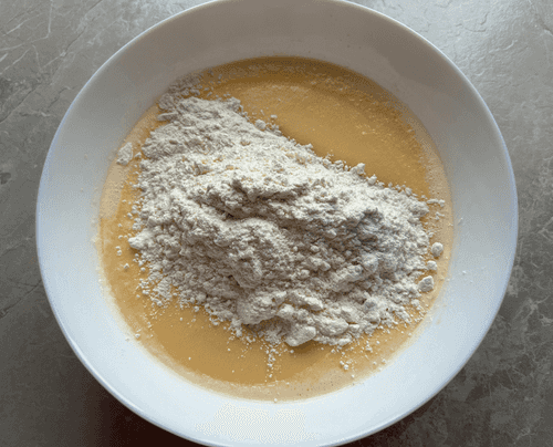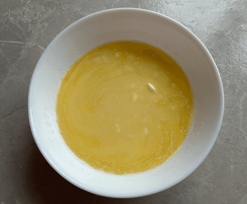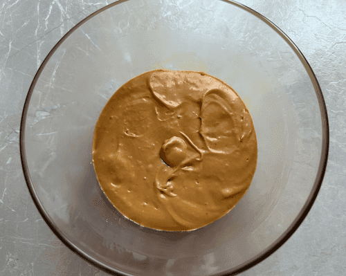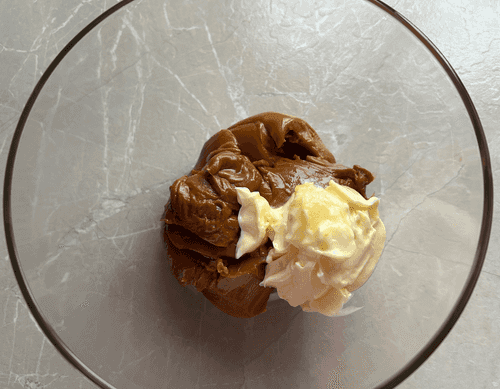 Для крема отправить в миску вареную сгущенку и 100 грамм мягкого сливочного масла.