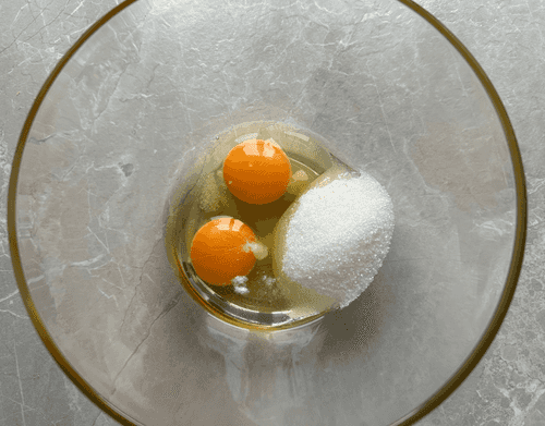 В миску разбить яйца, всыпать сахар, соль, ванилин.