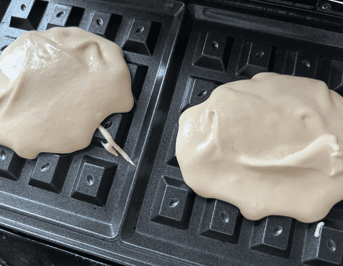 Выложить в разогретую вафельницу по 2 столовые ложки теста.