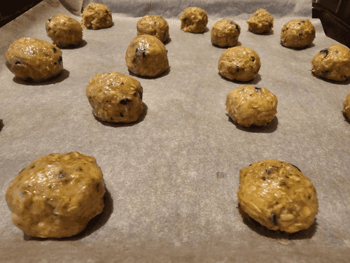Из теста сформировать шарики размером с грецкий орех и выложить их на пергамент на расстоянии друг от друга.