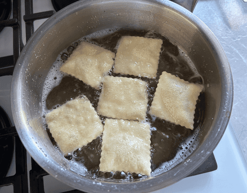 Разогреть масло и обжаривать тесто порциями по 3–4 минуты на среднем огне.