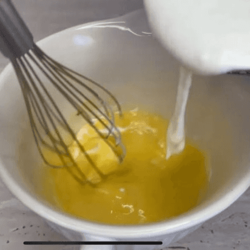 Влить маленькими порциями горячие сливки (ваниль предварительно нужно вытащить).