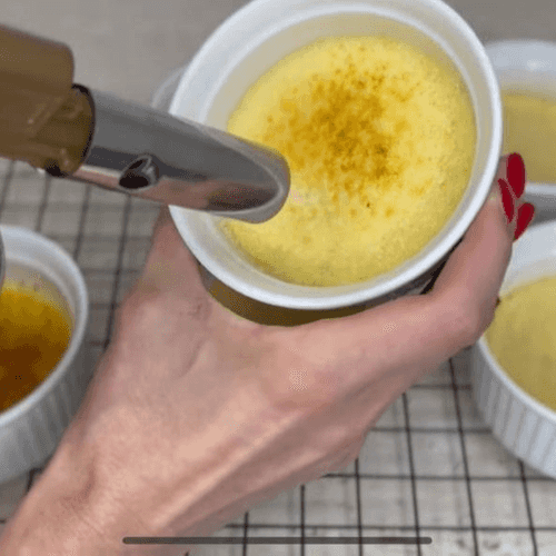 После стабилизации верхушку посыпать сахаром, после чего горелкой карамелизовать верх.