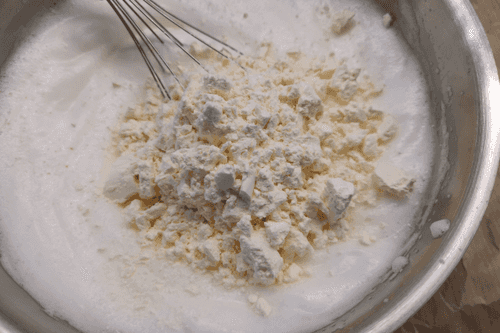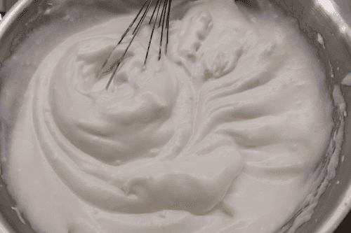 Интенсивно взбить миксером или венчиком белки.