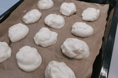 Выложить ложкой на противень будущие булочки.
