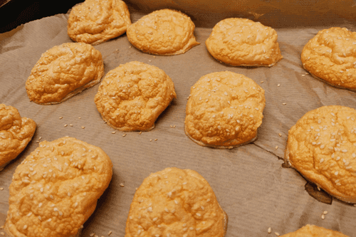 Присыпать их кунжутом.