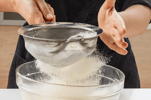 Просеять всю муку, добавить соду и тщательно перемешать венчиком до однородного густого, тягучего теста.