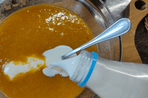 Добавить молоко и размешать.