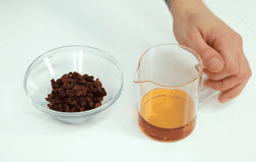 Параллельно замочить изюм в кипятке, смешав его с кальвадосом.