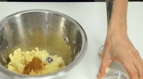 Выскоблить в тесто содержимое ванильных стручков и добавить корицу.