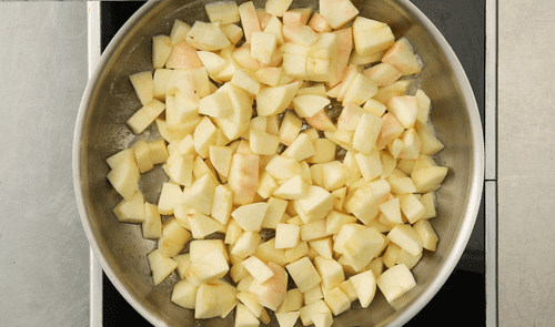Растопить немного сливочного масла на сковороде и обжарить яблочные дольки до мягкости.