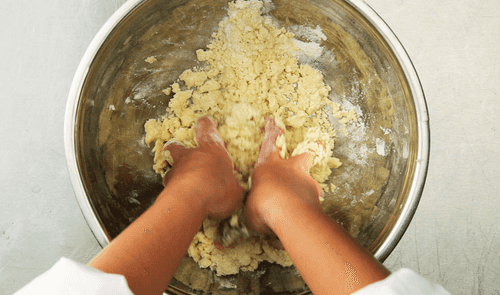 В отдельной емкости смешать руками муку с сахаром и 175 граммами сливочного масла до комкообразного состояния.