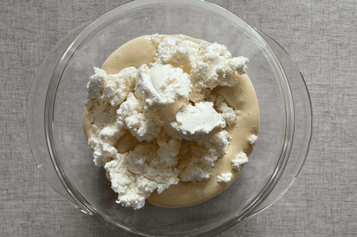 Смешать кокосовую муку и сметану, оставить набухать на время приготовления пирога.