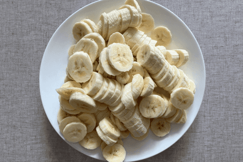 Бананы очистить и нарезать на кружочки.