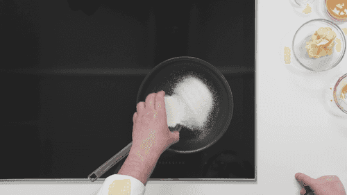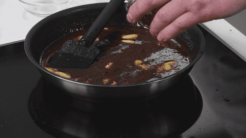 Снять сковороду с огня и дать карамели остыть 5–7 минут.