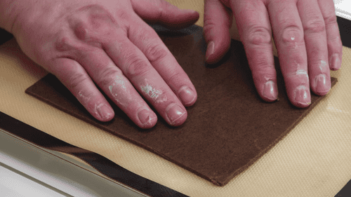 На хорошо подпыленную мукой поверхность выложить половину теста и раскатать движениями от центра к краям в прямоугольник толщиной 5–6 мм.