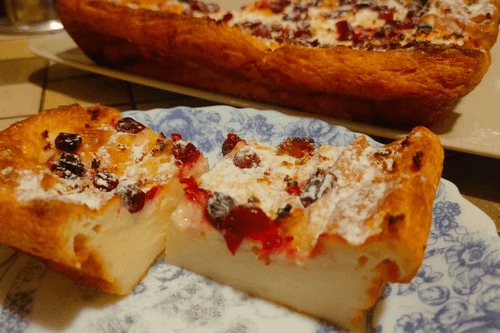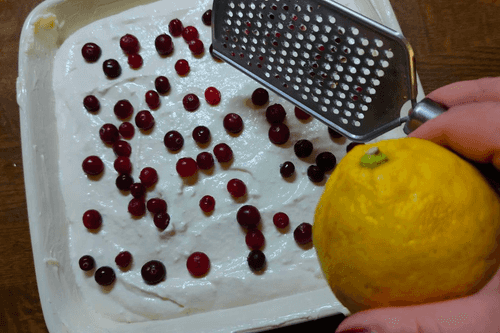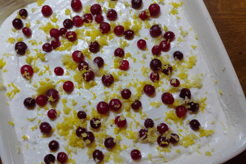 Творожная запеканка с клюквой и лимонной цедрой