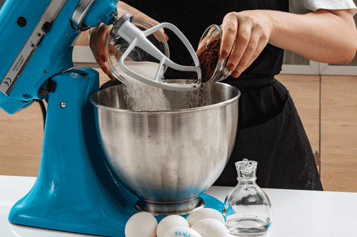 Спустя 4 часа добавить к опаре оставшиеся муку и дрожжи, какао, сахар, яйца, соль и холодную воду.