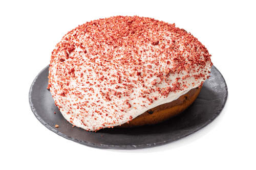 Выложить на кулич полученную массу, украсить сублимированными ягодами и подавать.