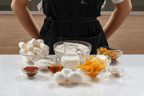 Подготовить все ингредиенты. Заранее достать 3 яйца и сливки из холодильника.