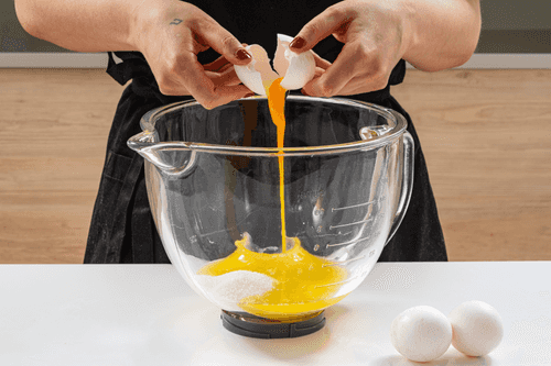 Растопить сливочное масло в микроволновой печи и остудить. Добавить 3 яйца, соль, 120 грамм сахара и ванильный сахар. Все смешать.