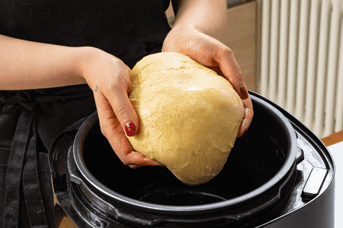 Сформировать из теста шар и переложить в мультиварку, смазанную растительным маслом. Оставить при 30–35 градусах на 1 час.