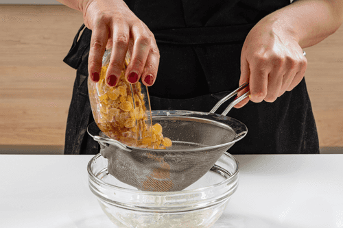 Изюм залить горячей водой и оставить на 15 минут. Затем обсушить.