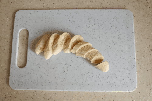 Банан очистить и нарезать кружками.