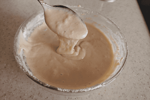 Постепенно вводить муку и постоянно размешивать, чтобы не образовывалось комочков.