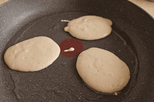 Столовой ложкой сформировать оладушек на хорошо разогретой сковороде, смазанной подсолнечным маслом.