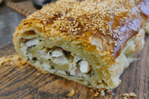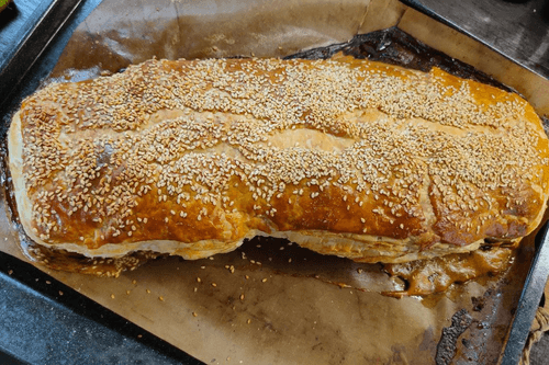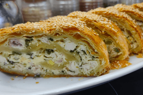 Рулет с курицей, яйцом и зеленым луком — это ароматное и сытное блюдо азербайджанской кухни, сочетающее в себе нежность куриного филе, мягкость яиц и свежесть зеленого лука. Корни этого рецепта уходят в традиции восточных кулинарных техник, где тонкое тесто используется для создания вкусных закусок и основных блюд. Этот рулет — идеальный вариант для уютного семейного ужина или праздничного застолья. Вкус гармонично сочетается: золотистая корочка из слоеного теста скрывает сочную начинку, пропитанную ароматами специй и кунжута. Блюдо подается горячим или теплым, а его мягкая текстура и насыщенный вкус делают его универсальным — его можно наслаждаться как самостоятельным кушаньем или дополнением к салатам и соусам. Прекрасный выбор для тех, кто ценит простоту приготовления и изысканный вкус!