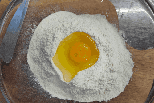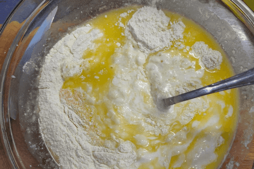 Яйцо разбить в миску со смесью.