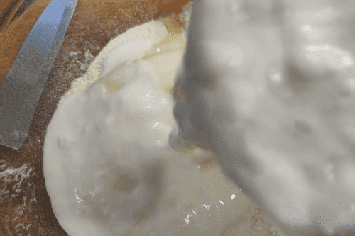 Налить кефир.