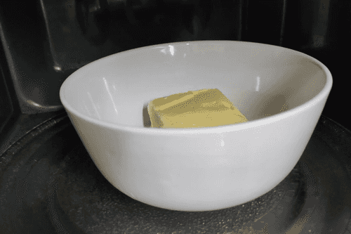 Масло выложить в емкость и поставить в микроволновку на 1 мин.