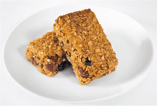Смешать овсяные хлопья, порезанный изюм и соль в большой плошке. В центре сделать ямку. В тяжелой кастрюле нежно растопить несоленое масло, сахар и патоку. Влить в ямку, затем постепенно подмешивать овсяные хлопья к центру. Перемешать всю смесь.