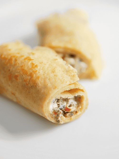 Готовые блины смазать пастой из сыра и инжира, свернуть в трубочку или любым другим манером и подавать, пока горячие.